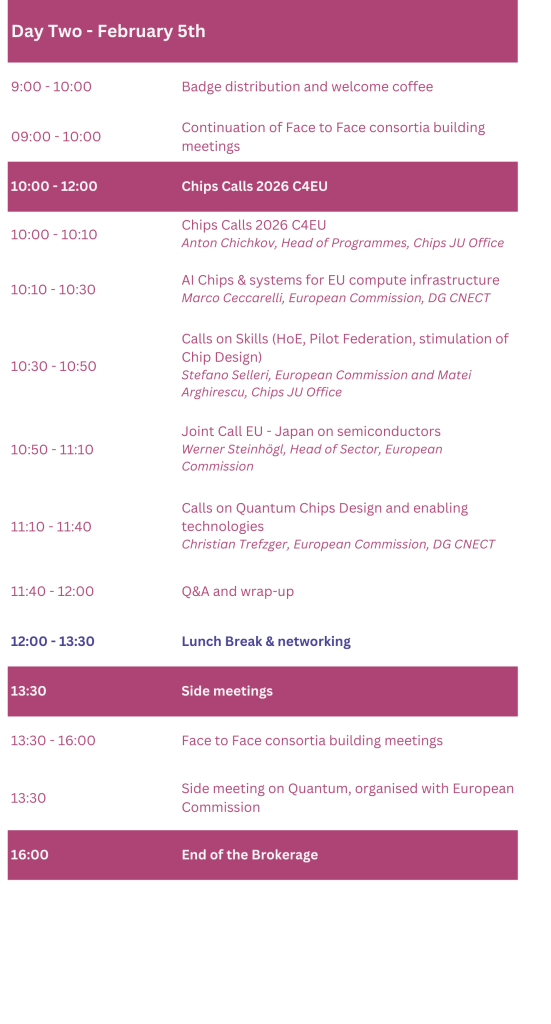 The event combines the brokerage activities of the industry associations AENEAS, EPoSS and INSIDE into one networking event dedicated to project proposals for the new Chips JU Calls 2026.